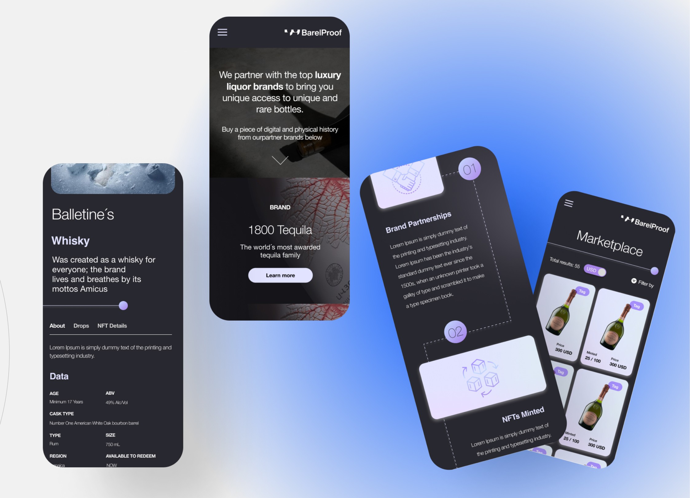 Diseñamos un marketplace de bebidas de autor las cuales incluían un NFT animado que se sumaba como parte del patrimonio