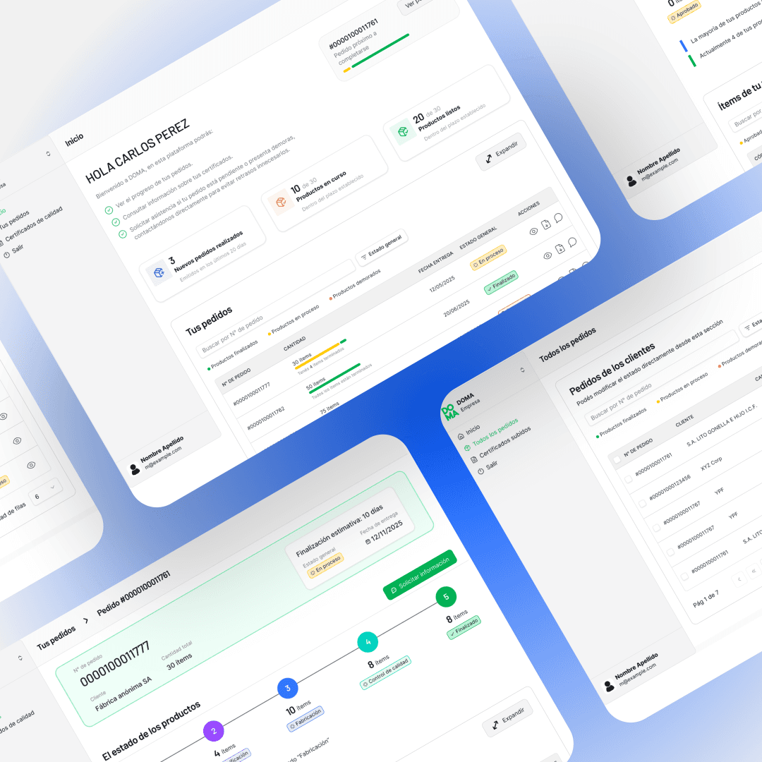 En este primer MVP la plataforma apunta a mejorar la comunicación de la empresa con sus clientes, dando mayor transparencia en el proceso de fabricación. Así como también ayudará a organizar internamente el proceso productivo y automatizar las tareas de las distintas áreas.